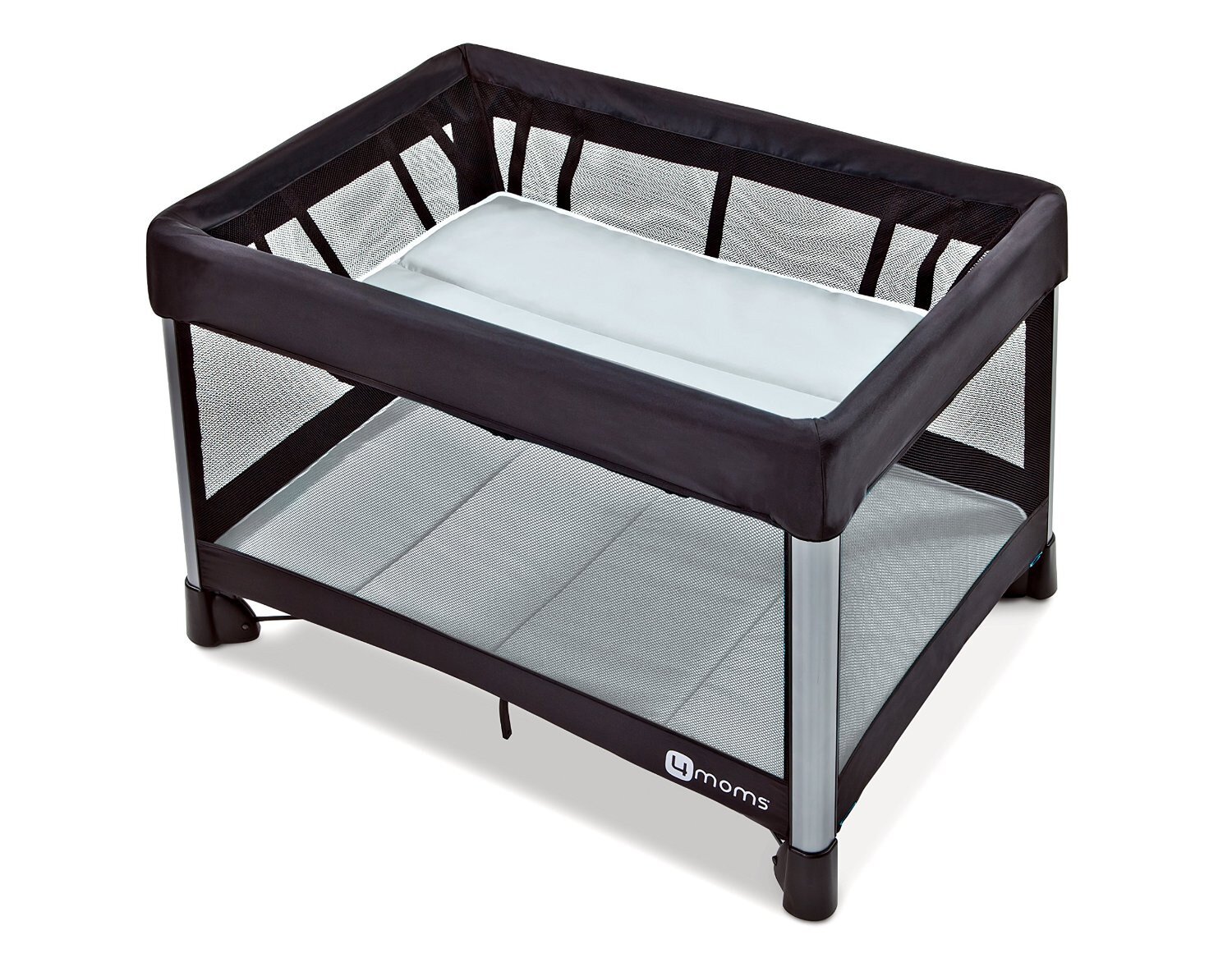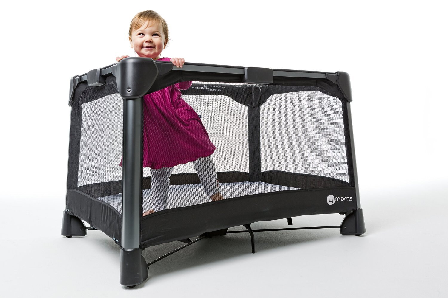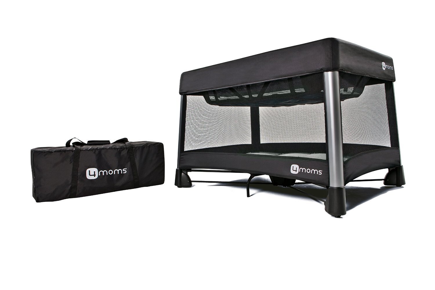 Playards are hard to use. The breeze is easy. The 4moms breeze opens or closes in one step. Just push down on the central hub to open and pull up to close - the latches are automatic and there's no tricky sequence of steps. Also included with this full-size playard are a removable bassinet, and a convenient travel bag. Playard and bassinet sheets sold separately
