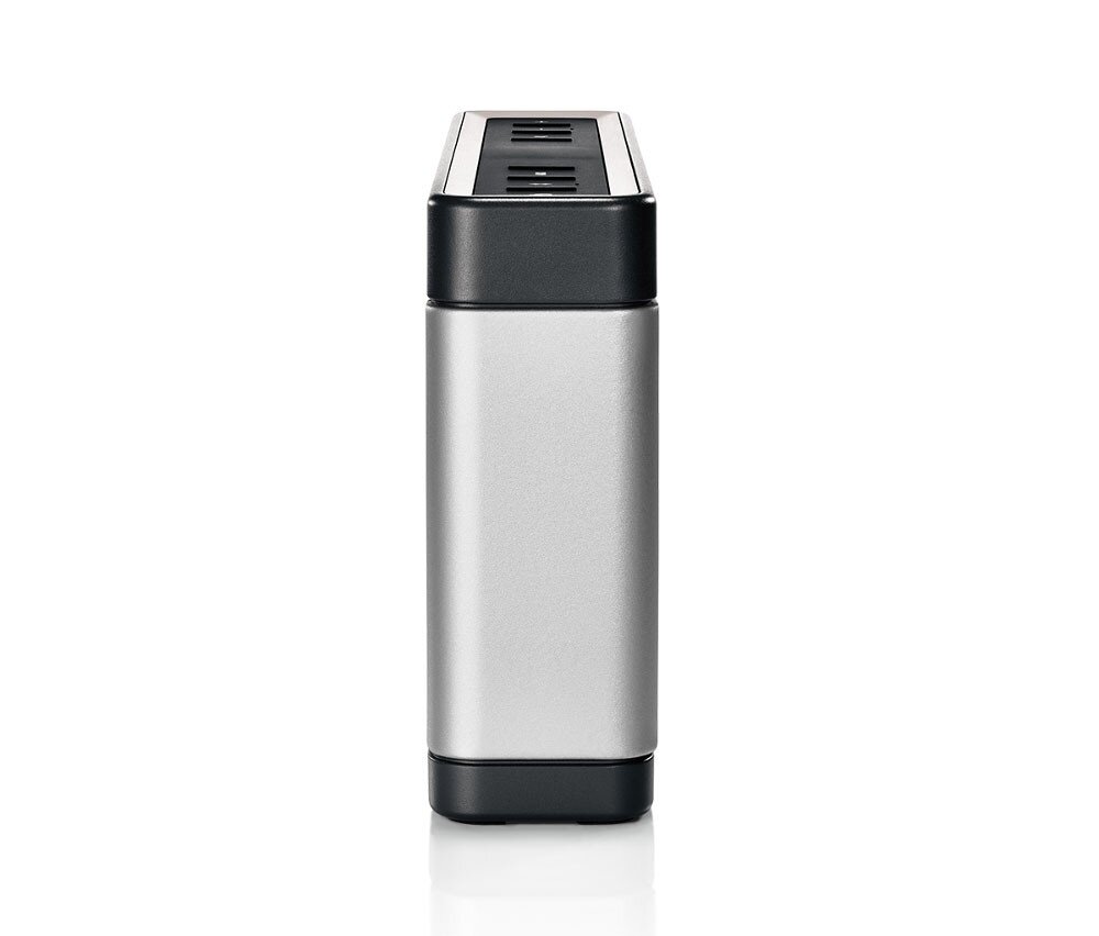 Sure, the sound draws a crowd. But this speaker also has a sleek look you’ll appreciate. Curved edges and a thin profile make a bold statement, especially when you add a touch of color with an optional cover. The speaker easily slips right into a bag or backpack. The silicone button panel protects it from dirt and dust, while a wraparound metal grille adds to its durability and resists fingerprints.