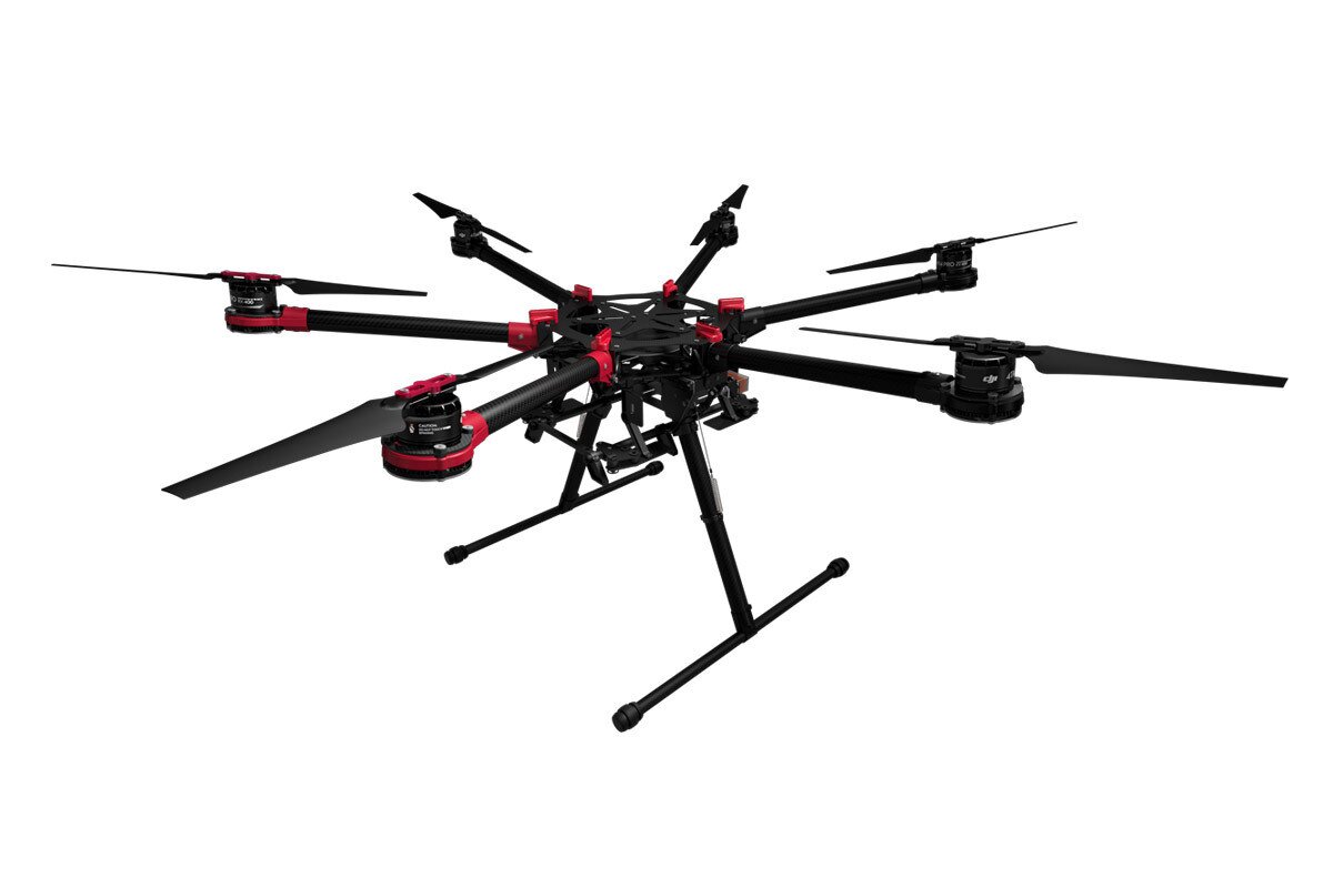 Supporting a total takeoff weight of 18 pounds, the Spreading Wings S900 Hexacopterfrom DJI is optimized for installing a gimbal such as the Zenmuse Z15 enabling capture of aerial videos and photos. It features carbon fiber frame arms to cut down on weight, which fold down for storage and transport. Used with a 6S 12000mAh battery, available separately, the S900 can fly for up to 18 minutes fully laden.