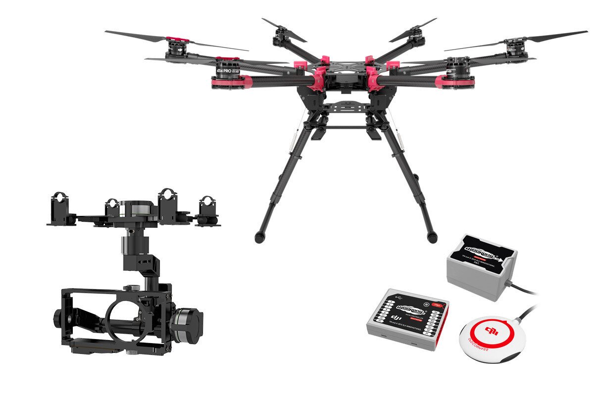 Supporting a total takeoff weight of 18 pounds, the Spreading Wings S900 Hexacopterfrom DJI is optimized for installing a gimbal such as the Zenmuse Z15 enabling capture of aerial videos and photos. It features carbon fiber frame arms to cut down on weight, which fold down for storage and transport. Used with a 6S 12000mAh battery, available separately, the S900 can fly for up to 18 minutes fully laden.