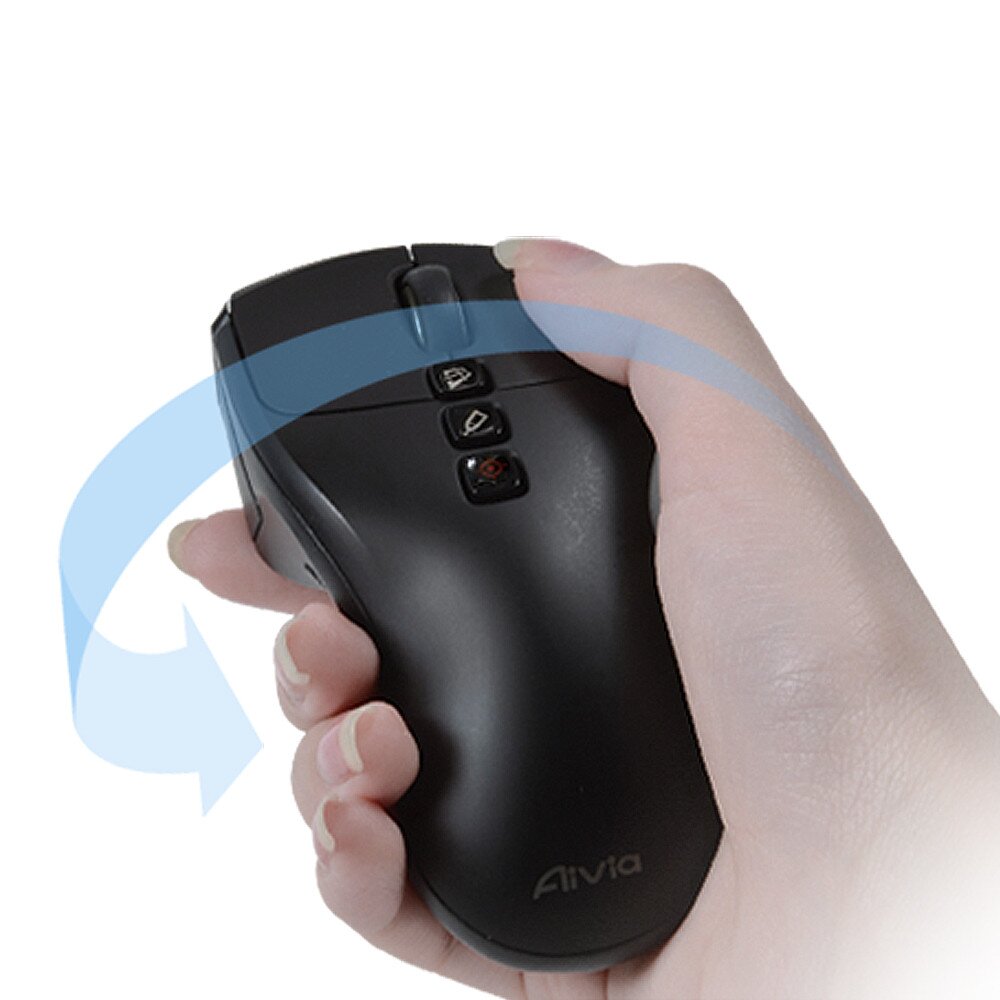 Lifting the Aivia Neon off any surface will automatically activate air-mouse mode. While in air-mouse mode pressing the air-mouse key will allow you to move the mouse cursor intuitively. Alternatively, double click the air-mouse key to keep the cursor active. Placing the mouse back on a surface will de-activate air-mouse mode.