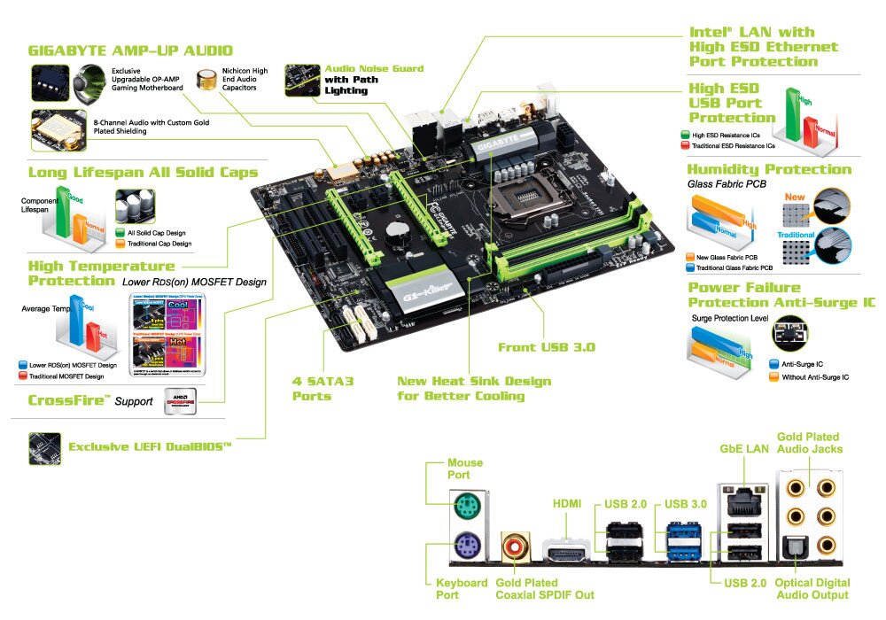 GIGABYTE 8 Series motherboards support the latest 4th Generation Intel Core processors, bringing together a unique blend of features and technologies that offer the absolute ultimate platform for your next PC build. From high current capable digital power delivery, performance-enhancing caching technologies, exclusive high-end audio features, advanced networking and device charging, gold plated hardware connectors and of course, killer good looks, GIGABYTE 8 series motherboards are in a class of their own.