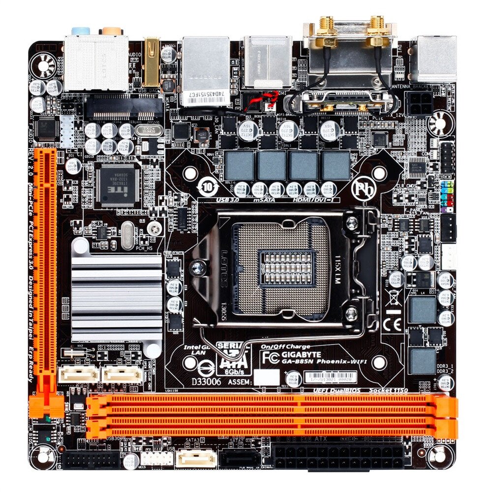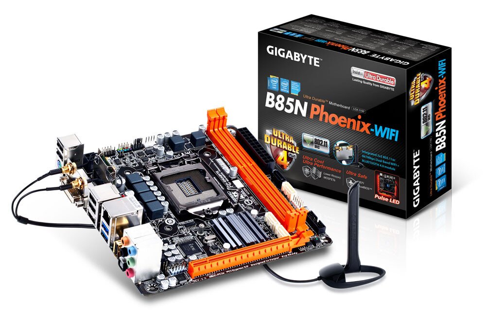 The GIGABYTE GA-B85N Phoenix is equipped with exclusive Pulse LED lighting on the underside of the PCB, providing a signature look for any custom PC build. The soft-glowing orange lighting elegantly phases in and out during system operation, bringing to life the GIGABYTE B85N Phoenix. Controllable through BIOS, users have 3 options including "Always On", "Off" or "Pulse" mode.
