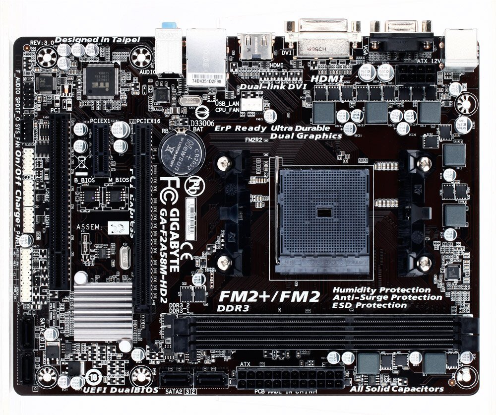 GIGABYTE FM2+ series motherboards based on AMD A58 chipset and feature the new FM2+ APU socket, and are designed to get the most from forthcoming Kaveri AMD APUs, while preserving compatibility for current AMD FM2 APUs. FM2+ AMD APUs offer native support for 8 GT/s PCI Express gen 3.0 as well as DX11.1 support integrating the high performance 'Steamroller' core. AMD socket FM2+ APUs also offer native support for 4K resolution displays on HDMI port.