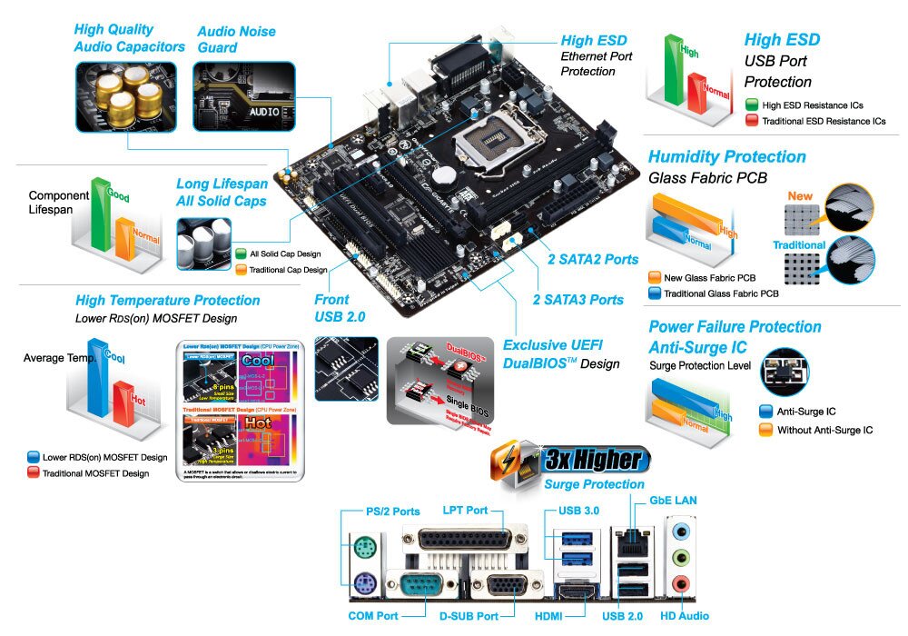 GIGABYTE motherboards feature High Resistance ICs which help protect the motherboard against electrostatic discharge.