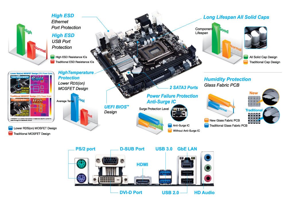 GIGABYTE motherboards feature High Resistance ICs which help protect the motherboard against electrostatic discharge.