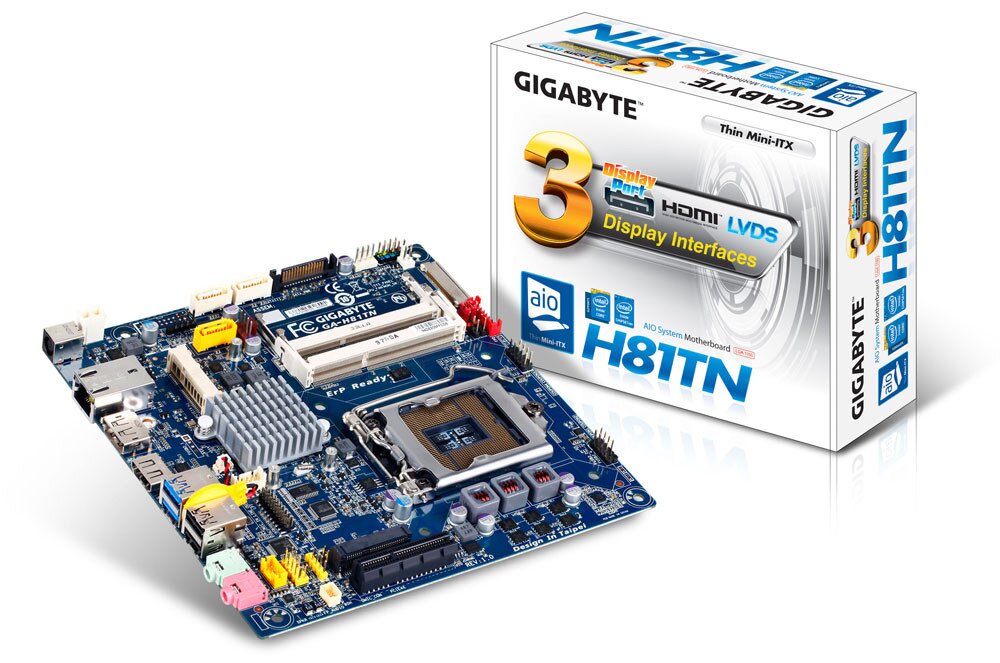 GIGABYTE Thin-Mini-ITX motherboards are the ideal platform for today's All-in-One, small form factor and slim profile PCs. Offering a full featured PC experience in a minimal device footprint, GIGABYTE Thin Mini-ITX motherboards are 43% thinner than traditional Mini-ITX designs. Complying with the latest Thin Mini-ITX guidelines, GIGABYTE Thin Mini-ITX motherboards offer additional flexibility making them suited to broad range of innovative PC designs.