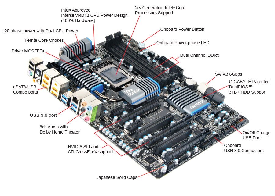 Get ready for a mind blowing media experience when you upgrade to a GIGABYTE P67A-UD5-B3 motherboard. Every component on GIGABYTE P67A-UD5-B3 motherboards is designed and engineered to deliver exceptional performance and clarity for your computing needs. Powered by the Intel P67 chipset with support for 2nd Generation Intel Core processors, GIGABYTE P67A-UD5-B3 enjoy uniquely developed technologies such as Maximum Power Delivery technology, Dual CPU Power technology and Ultra Durable 3 design just to name a few, that ensure a reliable and enjoyable computing experience.