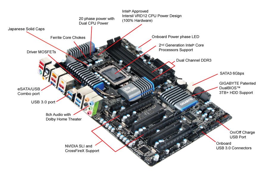 GIGABYTE DualBIOS is a patented technology that automatically recovers BIOS data when the main BIOS has crashed or failed. Featuring 2 physical BIOS ROMs integrated onboard, GIGABYTE DualBIOS allows quick and seamless recovery from BIOS damage or failure due to viruses or improper BIOS updating. In addition, GIGABYTE DualBIOS now supports 3TB+ (terabyte) hard drive booting without the need for partitioning, and enables more data storage on a single hard drive.