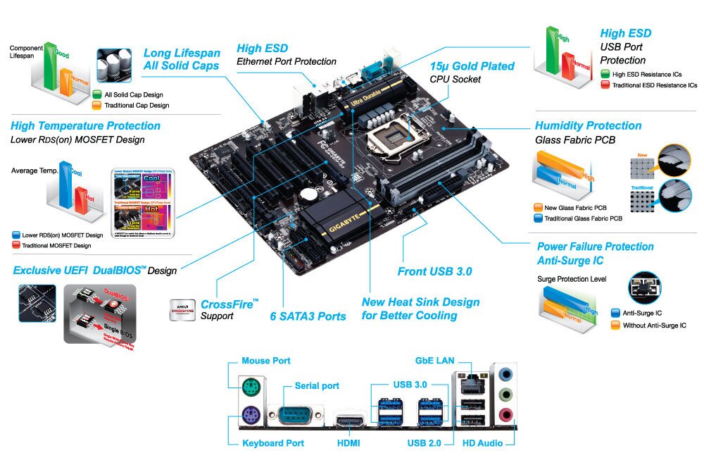 GIGABYTE Ultra Durable debuts on GIGABYTE motherboards, with a range of features and component choices that provide record-breaking performance, cool and efficient operation and extended motherboard lifespan.