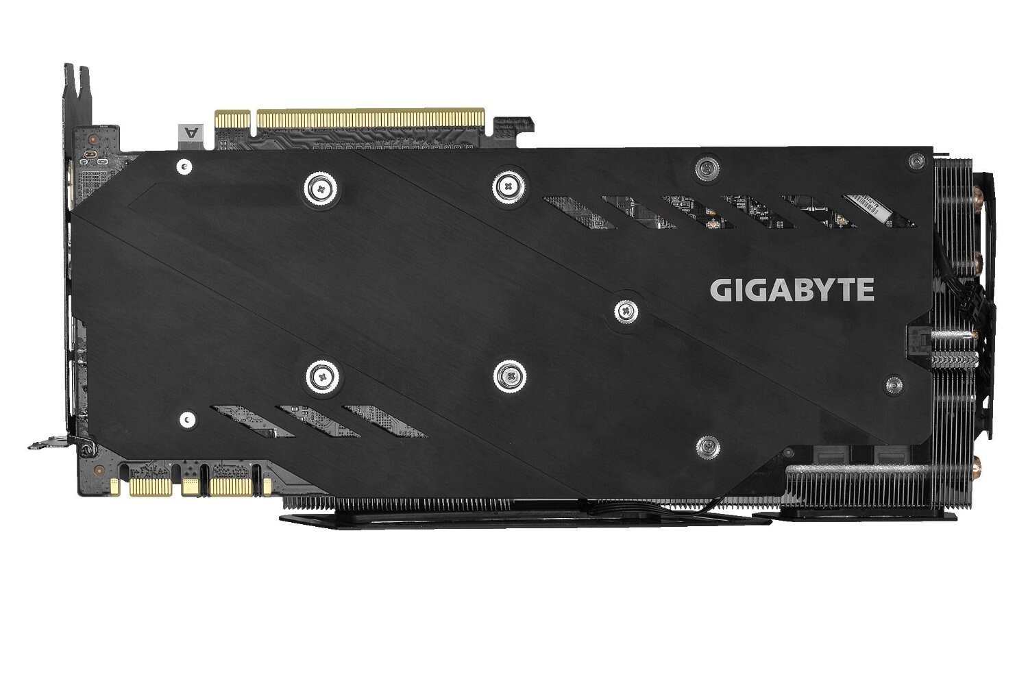 The WINDFORCE 3X cooling system features four 6mm and two 8mm composite heat-pipes, special fin architecture, unique blade fan design and GIGABYTE "Triangle Cool" technology, together delivering an effective heat dissipation capacity for higher performance at lower temperatures.