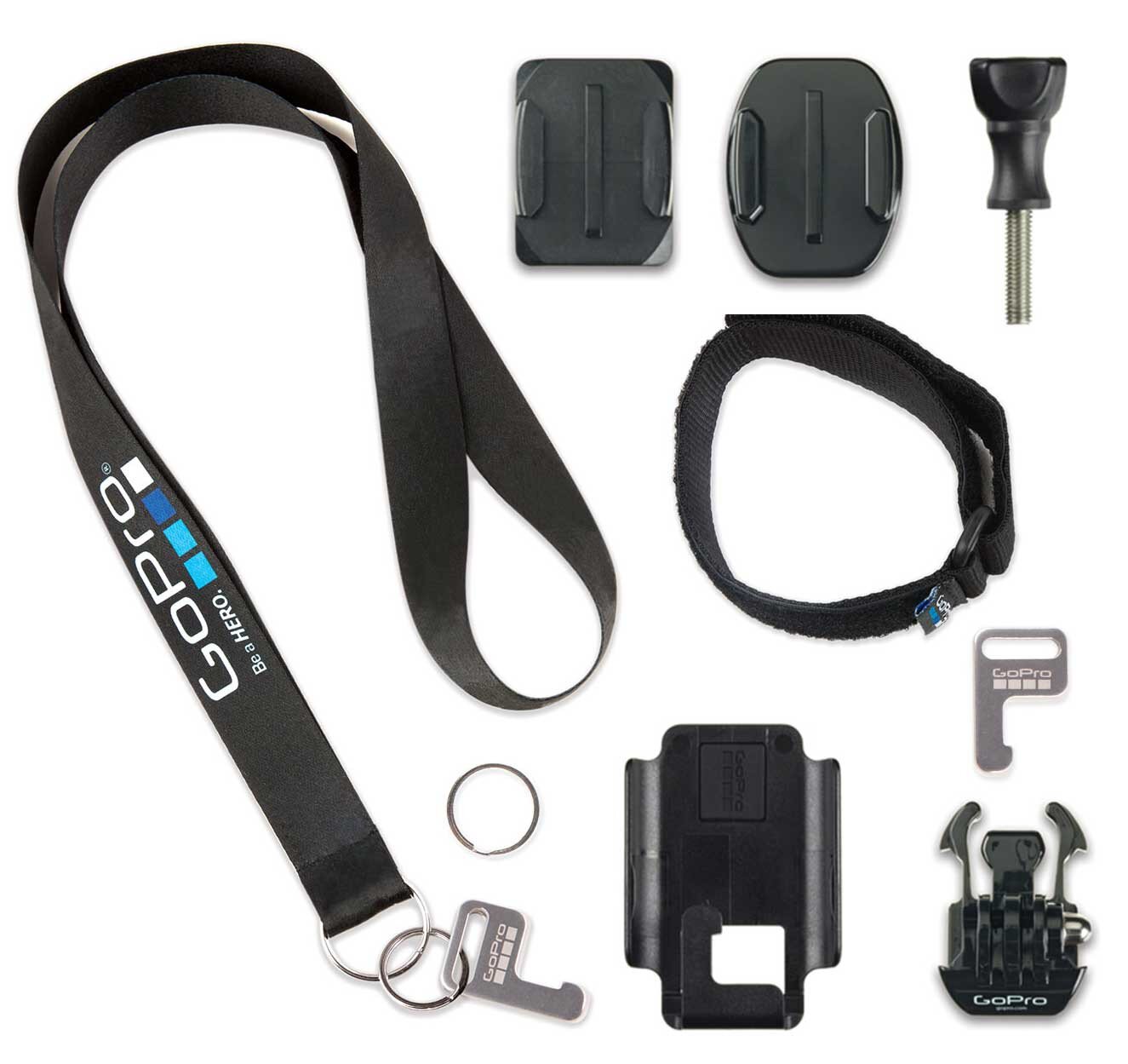These additional attachment accessories allow you to wear your Smart Remote or W-Fi Remote or mount it to your gear. Includes a wrist/pole strap, lanyard, two remote keys with key rings, remote cradle, Quick Release Buckle, Curved Adhesive Mount, Flat Adhesive Mount and more.