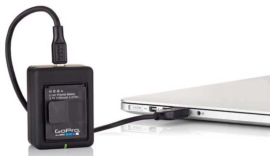 Power with most standard USB chargers, the GoPro Auto or Wall Charger or a computer