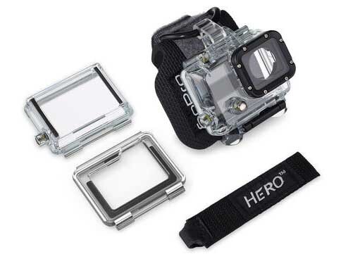 Wear your GoPro like a watch for easy access when capturing footage on the fly. The Wrist Housing secures the camera flat against your wrist, yet lets you quickly pivot it upright to shoot photos or video. When not recording, you'll have full use of both hands, making it perfect for surfing, snorkeling, climbing and skiing. Fits over ski gloves or jackets with the included adapter, plus straps to kayak paddles, kitesurfing kites and other gear for a wide range of shooting possibilities. Waterproof to 197' (60m).