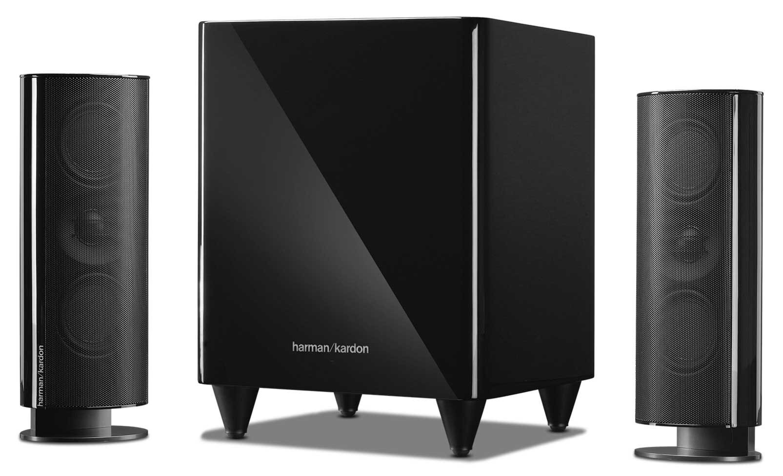 Designed to serve as an expandable home theater loudspeaker package, the HKTS 200BQ is the foundation of a music and film fan's dream system. Harman Kardon(R) engineers have designed all of the system's components to work together, resulting in a rich and realistic sonic performance. Two voice-matched left and right speakers, with powerful flat-diaphragm, midrange drivers and smooth CMMD(R) Lite dome tweeters, are partnered with a lusty, down-firing subwoofer to ensure a fully balanced playback environment. You can place these video-shielded speakers near your TV without causing magnetic interference, while carefully engineered, 2-1/2-way crossovers help ensure smooth transitions between the satellite speakers' high-frequency tweeters and midrange drivers. The speakers look beautiful, too, thanks to glossy, streamlined black exteriors that fit any interior design. The system is compatible with HTFS 3/E floor stands (to place the speakers at ear level) and additional speakers (to expand the system to 5.1 or 7.1 channels). By elevating your home theater from the ordinary to the truly extraordinary, the HKTS 200BQ ensures that you'll have a best-in-class 2.1-channel cinema experience.