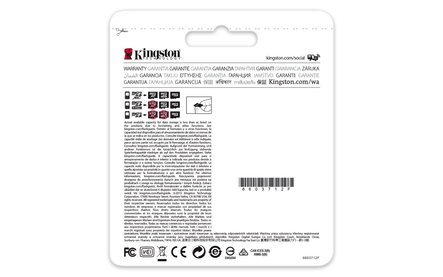 Kingston's microSDHC/microSDXC Class 10 UHS-I card features Class 10 UHS-I speeds of 45MB/s read and 10MB/s write, making it ideal for photographers who shoot everything from still images to kids and pets in motion. It's also ideal for cinema-quality HD (1080p) video and reduces buffer time between shots when compared to the Class 4 card. The smallest SD card available, microSDHC/microSDXC Class 10 UHS-I is the standard expandable storage option for many tablets, smartphones and action cameras. Designed to withstand harsh environments, this versatile card is tested to be waterproof, temperature proof, shock and vibration proof and X-ray proof.