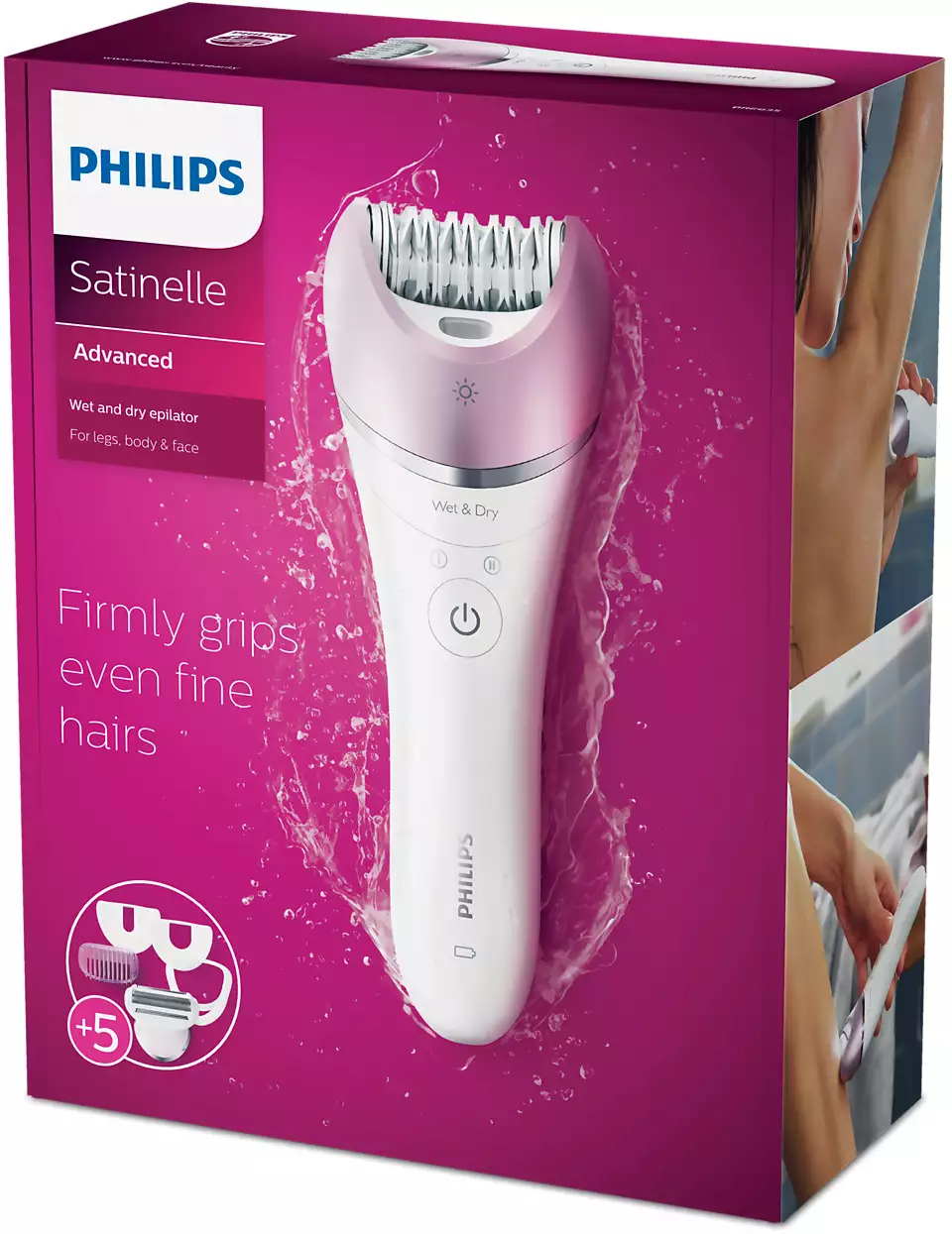 Extra wide epilation head grabs more hairs on the first pass for faster hair removal without pulling sensitive skin
