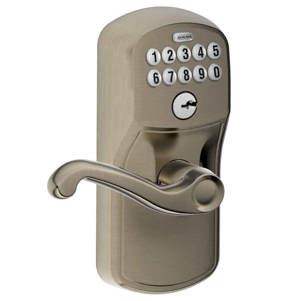 Discover Schlage Keypad Lever with Plymouth Trim and Flair Lever with Flex Lock - Antique Pewter