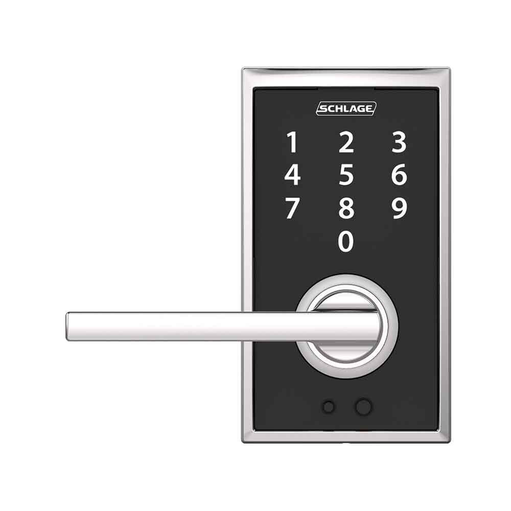 Discover Schlage Touch Keyless Touchscreen Lever with Century Trim and Latitude Lever - Bright Chrome