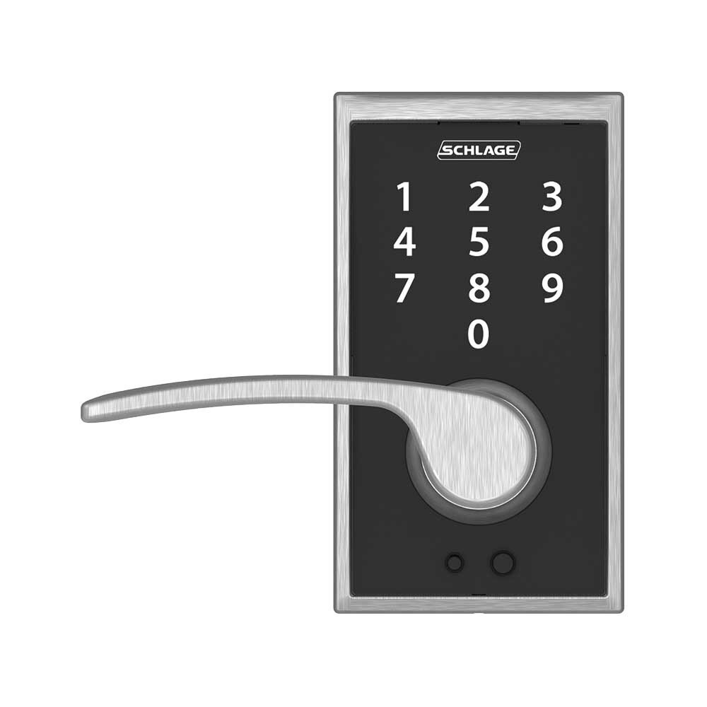 Discover Schlage Touch Keyless Touchscreen Lever with Century Trim and Merano Lever - Satin Chrome