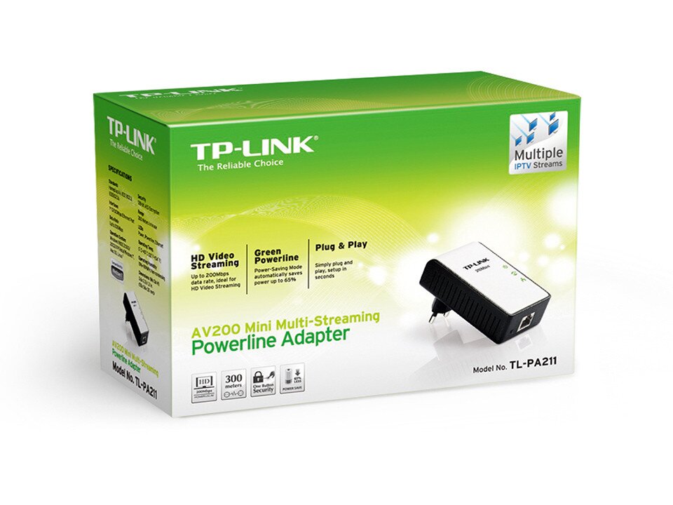 With advanced HomePlug AV technology, TL-PA211 provides users with stable, high-speed data transfer rates of up to 200Mbps on a line length of up to 300 meters. Together with its built-in Qos and powerful AES encryption, the TL-PA211 is a great choice for a whole home solution to connect all network compatible devices--from computers and game consoles to set-top boxes for IPTV to printers and NAS hard drives.