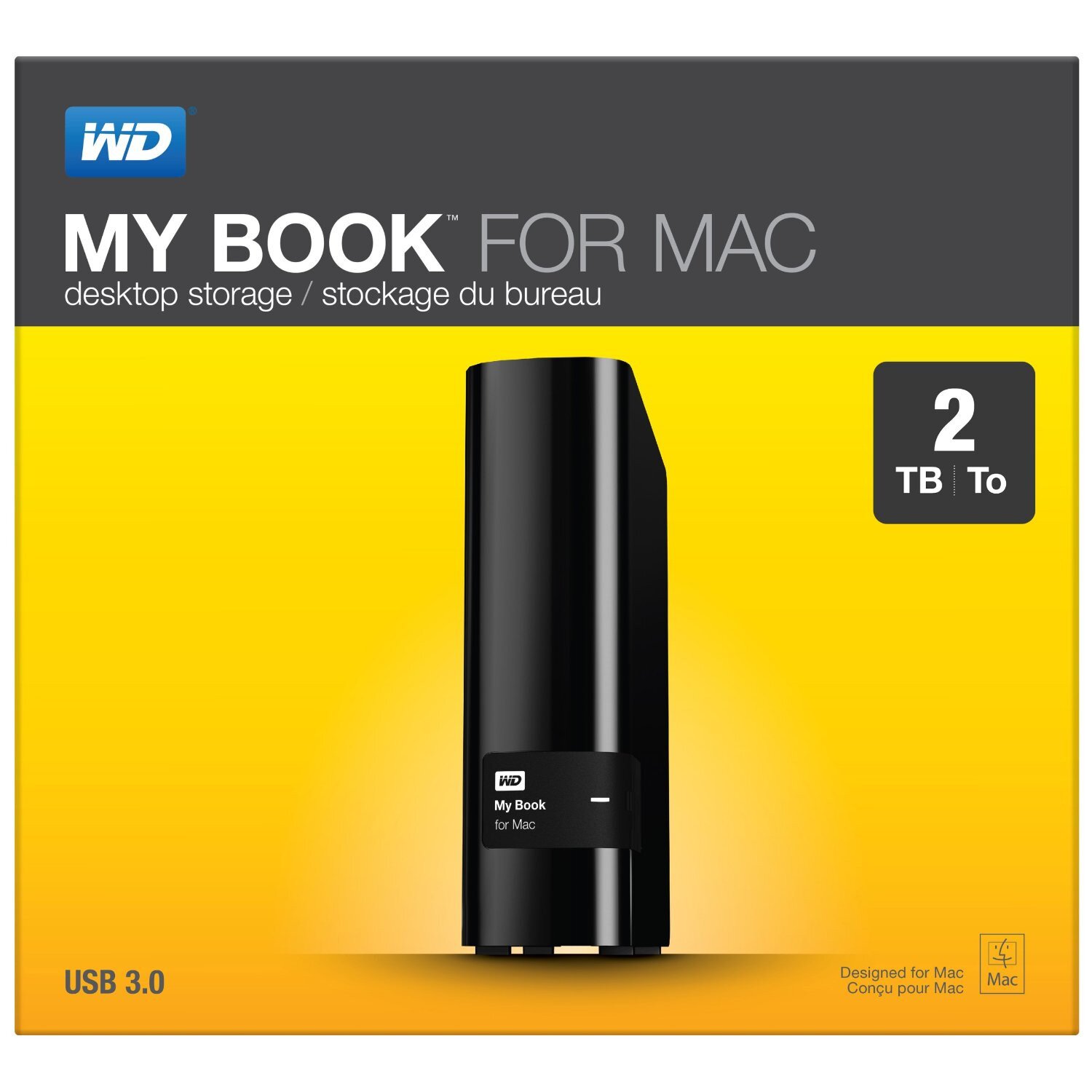 My Book for Mac desktop storage is compatible with Apple Time Machine, offers password protection with hardware encryption and is USB 3.0 and 2.0 compatible.